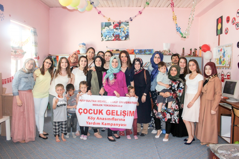 Üniversitemizin en genç kulüplerinden biri olan Renkli Yaşam Kulübü ile Meslek Yüksekokulu Çocuk Gelişimi Programı öğrencileri "Köy Anasınıflarına Yardım Kampanyası" kapsamında Sakarya'nın Geyve ilçesindeki Burhaniye Köyü anaokuluna oyuncak ve kırtasiye malzemesi yardımında bulundular. Çocuk Gelişimi Program Başkanı Öğr. Gör. Musa Bardak ve öğrenciler yardım malzemelerini okula teslim ederek çocukların sevinçlerine ortak oldular. Anaokulu öğretmeni Esin Ateş ve köy muhtarı Recep Kara, Üniversitemizin öğrencilerine dağıtım boyunca destek verdiler.