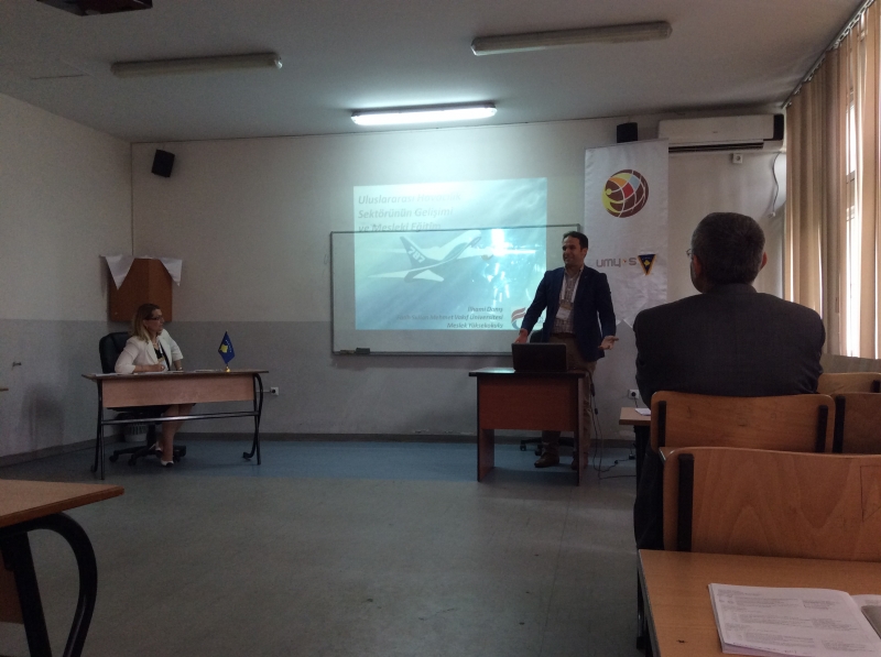 Türkiye'den, Kosova'dan ve Avrupa'nın farklı ülkelerinden 300'e yakın akademisyenin katılımıyla gerçekleşen sempozyuma Meslek Yüksekokul Müdürümüz İlhami Danış "Uluslararası Havacılık Sektörünün Gelişimi ve Mesleki Eğitim" konulu bildiri ile katıldı. İki gün süren sempozyumda mesleki eğitimin sorunları tartışılıp, çözüm önerileri değerlendirildi.